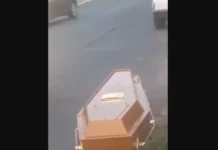 Veja: caixão cai de carro funerário e assusta moradores