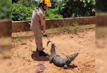 No interior do Acre, bombeiros capturam jacaré de 1,60 metros no meio da rua