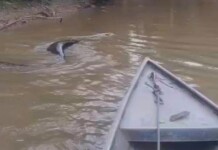Sucuri gigante é flagrada boiando em rio no interior do Acre