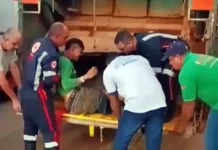 Pescadores da região do segundo distrito de Porto Walter, no interior do Acre, se depararam com uma sucuri de aproximadamente 6 metros durante uma...