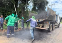 Deracre realiza operação tapa-buraco na AC-405 em Mâncio Lima
