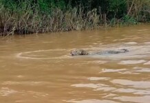 VÍDEO: onça pintada surge atravessando rio Juruá e assusta pescadores