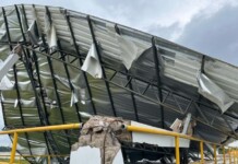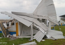 Vendaval destrói palco de shows do estádio Totão em Mâncio Lima