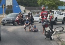 Em Cruzeiro do Sul, moto colide contra bicicleta e deixa feridos