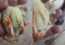 No Acre, pintinho nasce com quatro patas e deixa moradores impressionados
