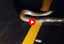 Sucuri de cerca de cinco metros é vista atravessando a BR-364 no Acre