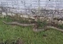 Sucuri de 6 metros é encontrada em quintal de residência em Manoel Urbano