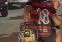 VÍDEO: torcedor usa motor na garupa de moto, durante carreata em Cruzeiro do Sul