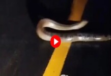 Sucuri de cerca de cinco metros é vista atravessando a BR-364 no Acre
