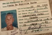 Documento do Sindicato dos Trabalhadores Rurais mostra que dona Joana do Espírito Santo nasceu em fevereiro de 1909 — Foto: Douglas França/TV Gazeta
