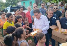 Gladson entrega peixes e chocolates a famílias atingidas pelo igarapé São Francisco na Vila...
