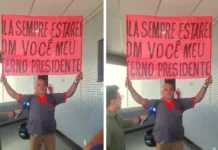 Militante de Lula leva cartaz ao aeroporto: “sempre estarei com você”