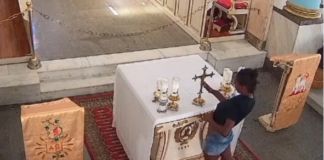 VÍDEO: Mulher furta crucifixo de igreja e acaba detida