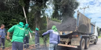 Deracre realiza operação tapa-buraco na AC-405 em Mâncio Lima