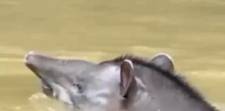 Turistas flagram raro casal de antas no Rio Moa, na Serra...
