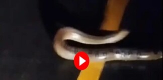 Sucuri de cerca de cinco metros é vista atravessando a BR-364...