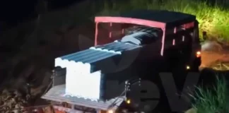 Caminhão sai da pista ao tentar desviar de buraco na BR-364